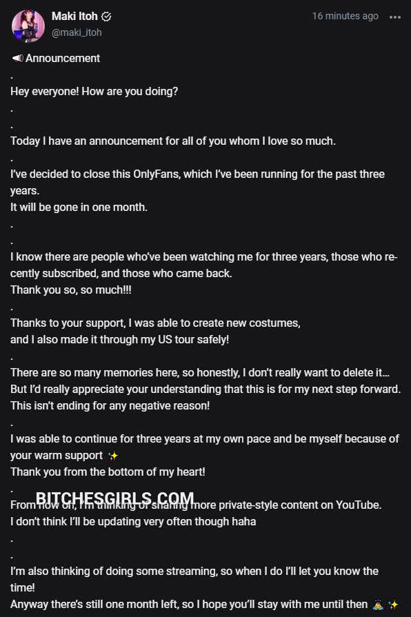 Thots influencer maki itoh girl official video onlyfans leaked. The latest leaks of sexy only fans makiitoh is teasing her naked body on sex compilation and lingerie photoshoot only fans leaked from from January 2026 for free on bitchesgirls.com. Hot maki itoh gonewild. Makiitoh adult pics. Do you know what is real name of maki itoh?. She is definetly F18+, but do you know what is makiitoh age?